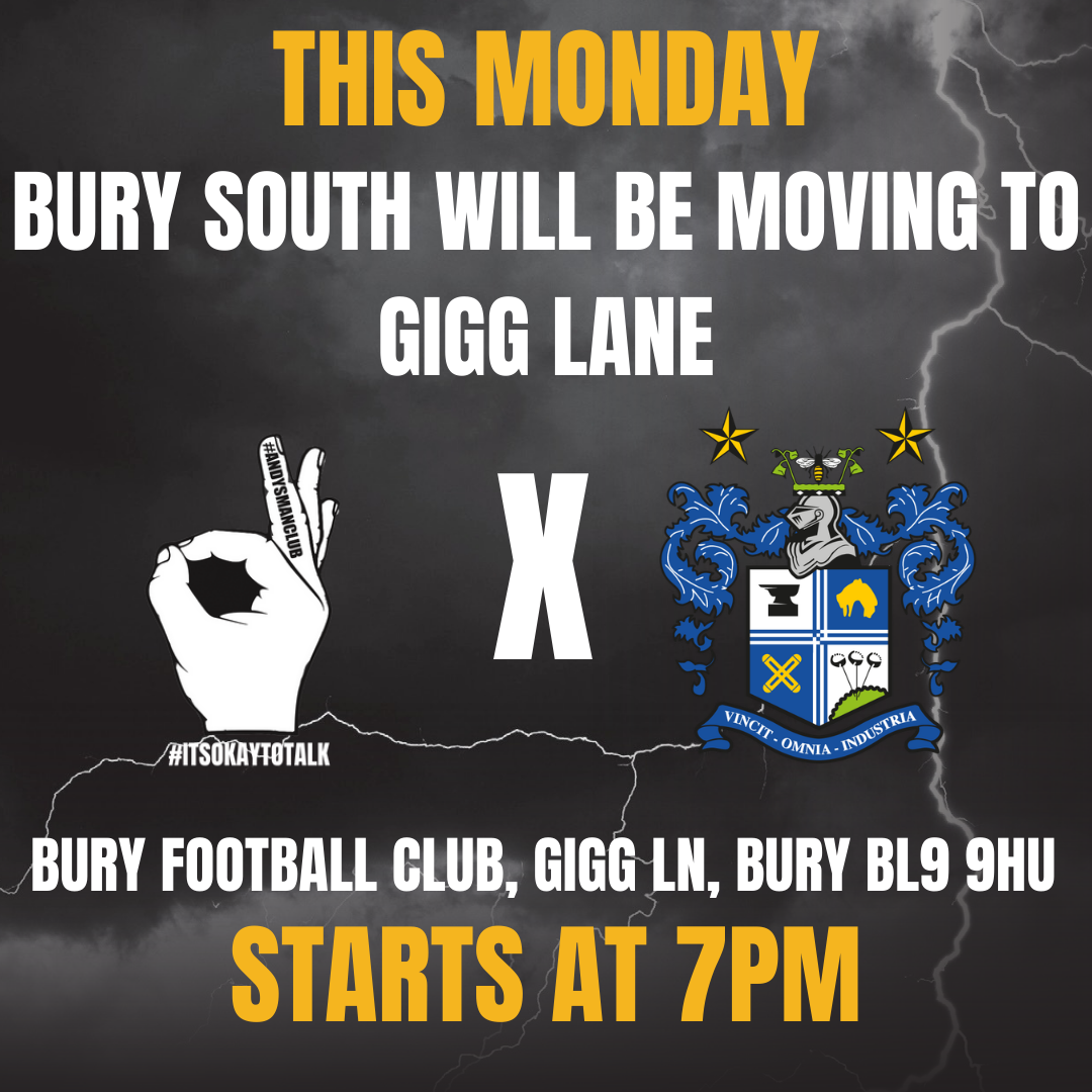 As of this Monday (16th February), the Bury South branch of Andy’s Man Club will be moving to Bury Football Club in the newly refurbished ET Clay 1885 Suite. Come along this Monday for a brew, a biscuit and a chat. Find out more about Andy’s Man Club by visiting their Bury Facebook page here, or their website here. View the full article