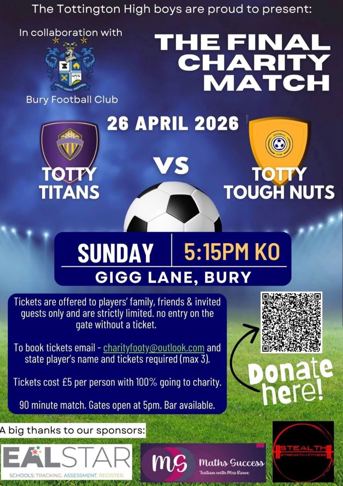 21. Bury Football Club to host special charity final at Gigg Lane for local youngsters. Bury FC is proud to welcome a group of Tottington High School students to Gigg Lane later this month, as they bring their remarkable charity initiative to a fitting conclusion. Over recent weeks, the students have developed their own football tournament series, raising funds for Cancer Research UK in honour of a close friend who sadly lost his mum to cancer. What makes this story so powerful isn’t just the cause, it’s how they’ve gone about it. Without external backing or adult support, the group has taken full ownership of the project. From coordinating fixtures and sourcing pitches to handling budgets, sponsorship outreach and event promotion, they’ve approached the initiative with a level of professionalism well beyond their years. Their journey hasn’t been without its challenges, but their consistency and determination have seen the project grow, building momentum across the local community and exceeding their initial fundraising expectations. Recognising the impact of their efforts, Bury Football Club is delighted to provide the stage for their final event on Sunday 26th April – offering the opportunity to play at Gigg Lane and celebrate everything they’ve achieved together. Casey Lynchey, Head of Operations & Community at Bury Football Club, said: “We’ve been genuinely moved by what these young lads have achieved. The resilience, organisation and compassion they’ve shown for their friend and for others is something that deserves to be recognised and celebrated. At Bury FC, community is at the heart of everything we do, so to be able to welcome them to Gigg Lane for their final is a real privilege. We hope this experience creates lasting memories for them and inspires others to see what can be achieved when people come together. For us, this is about more than hosting a match. It’s about recognising and championing a group of young people who are making a real difference.” The club hopes the occasion will not only celebrate the group’s outstanding efforts, but also shine a light on the positive influence young people continue to have across the community. With donations now exceeding £1,000, the initiative has already made a meaningful impact, but there is still an opportunity to go even further. Support remains open and any additional donations or sponsorship will play a vital role in helping the group maximise their contribution to such an important cause. We urge the Bury community to get behind the campaign and help take their fundraising efforts even further. View the full article