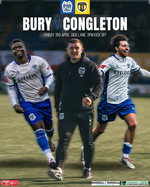 30. The Shakers welcome a struggling Congleton Town side to Gigg Lane this weekend, hoping to continue a three-game unbeaten run. Sitting four points clear at the top with five games to go, Anthony Johnson’s side will know how much a win this weekend would mean in our bid for automatic promotion. Our opposition, Congleton Town, sit at the opposite end of the table in 17th, just three points above the drop. The two sides last meeting ended in a 0-0 draw in last August. In Opposition – Congleton Town Congleton Town, also known as The Bears, were formed in 1901 where they joined the Crewe and District League. The side have played at the same ground, Cleric Stadium, since 1903, and they reached the FA Cup First Round Proper in 1989-90, losing out to Crewe Alexandra. After more than twenty years away, The Bears returned to the Northern Premier League West in 2024, and achieved their highest finish of third last season, where they narrowly missed out in the play-off final to Hednesford Town. On the Day & In the GroundOur Matchday @ Gigg guide is available to read to find out everything you need to know going on in and around the ground. Tickets are still on sale via our ticketing page on our website. Pay on the gate will also be available. There is no segregation for this fixture, but Congleton supporters are asked to purchase their tickets here. Due to the fixture being moved to Good Friday, we’ve faced some logistical challenges in preparing for larger matchday crowds, particularly around securing additional emergency services, which typically require at least a month’s notice for attendances above 5,000. We are working closely with providers to have everything in place, but at present, capacity is capped at 4,999. As a result, the match will be ALL-TICKET, and supporters are strongly encouraged to purchase in advance to avoid disappointment. Should we be able to safely increase capacity, we will review and update fans immediately so let’s pack out Gigg Lane and get right behind the lads this Good Friday! Starkies will be open at the normal time of 12.30pm for supporters to access from the Manchester Road End entrance before kick-off. This will be on a first-come, first-served basis up to capacity, which will be managed on the door. You MUST have a ticket for entry. Starkies will remain open throughout the game (for those in the main stand only) as well as after the game. Matchday Media CoverageIf you are unable to make it to the action at Gigg Lane, we’ll have all the live coverage across our media platforms. Live Stream: A stream will be available in the UK and abroad. This can be purchased online from Friday morning, up until kick-off. The game will be free to stream for season ticket holders. Keep up-to-date with all our video content via the club’s YouTube Channel. Click to subscribe and never miss highlights and match reaction across the season. Audio Commentary: Roch Valley Radio will be providing commentary for this game (UK only, due to competition broadcasting rules). Join the team from the press box at Gigg Lane. Click here ahead of kick-off to listen live. Audio commentary will be provided for every game of the season, so you will never miss a piece of the action. Social Media: Our team will also bring you in-depth text commentary via the club ‘MatchDay Live‘ Twitter feed, with team news and half time and full time updates available also on Facebook and feel like you are there with our match galleries and imagery available over on Instagram. Whatever the weather, wherever you are across the globe, we have you covered. Up the Shakers! #ShakersTogether | #BuryFC | #PartOfIt View the full article